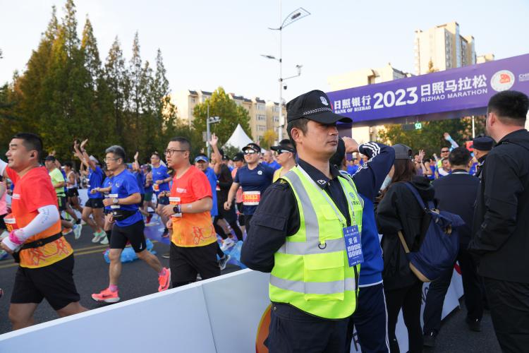 一路奔跑,一路護(hù)航。10月29日7:30,日照銀行·2023日照馬拉松比賽,鳴槍開跑。賽道內(nèi),2萬名運(yùn)動健兒追夢的腳步不停歇;賽道外,2000余名日照保安人全力護(hù)航。一個個挺拔的身影,是賽場上不可缺少的守護(hù)者,構(gòu)成了令人難忘的靚麗風(fēng)景線。